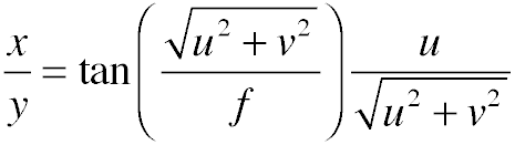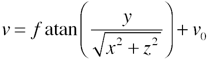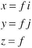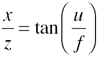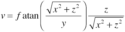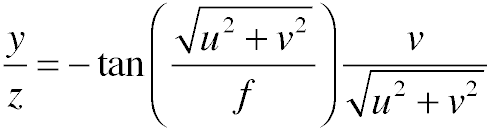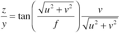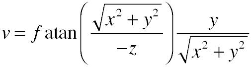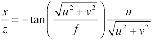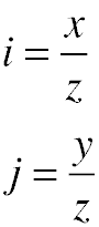 where i and j are the coordinates of the pixel relative to the center of the image, and x, y, and z are their coordinates in 3D.